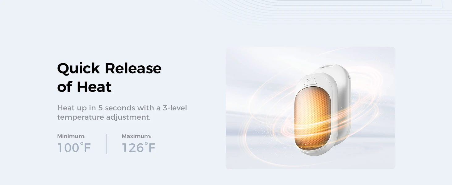 With a rapid heating capability, the UT3 Lite hand warmers reach their maximum temperature of 126℉ in just five seconds. Featuring three adjustable temperature settings, they cater to your specific warmth needs, while the powerful 5000 mAh lithium rechargeable battery ensures long-lasting performance of up to 16 hours on a single charge. The USB-C charging port allows for quick and convenient recharging, making these hand warmers a reliable choice for any outdoor enthusiast or anyone who suffers from cold hands.